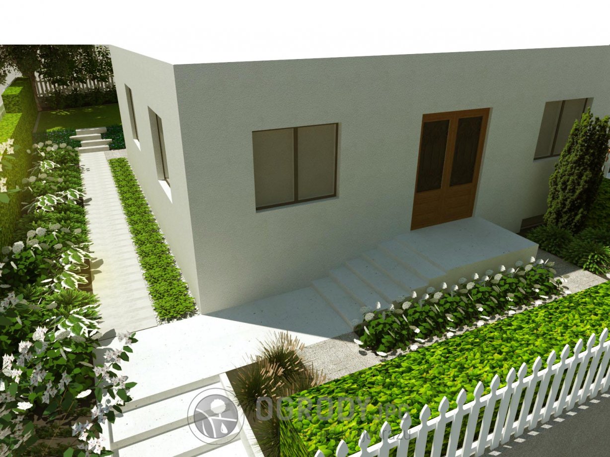 Głównym założeniem opracowania było zaprojektowanie ogrodu dostosowanego do potrzeb Właścicieli: przestrzeń z trawnikiem, pozostawienie istniejącej magnolii w punkcie centralnym, dodatkowa strefa do wypoczynku w której znajduje się miejsce na palenisko lub grill. Jedną z potrzeb było osłonięcie się od sąsiednich budynków. Układ rabat i nawierzchni jest nowoczesny, nawiązujący do kształtu działki.
